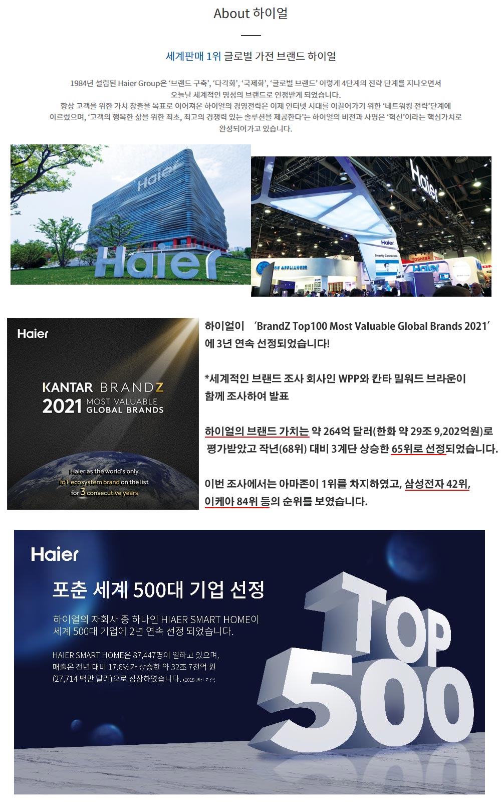 ✔ 하이얼은 전 세계 160개국에서 판매되며,